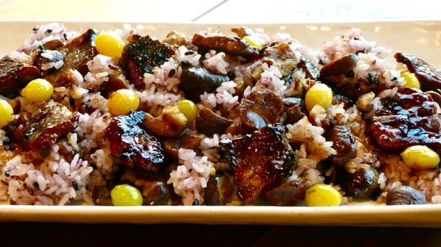 炊き上がった栗おこわ(正しくは甘栗おこわ)に、