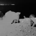 親ペンギンたちは海に漁に出かけていて、暗くなった頃に魚を捕まえて泳いでこの岩場に戻ってくるそう・・
